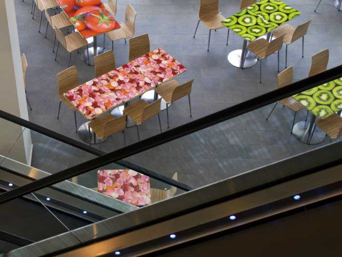 Riippuen käyttökohteesta ja tavoiteltavasta kulutuksenkestosta, kuva voidaan integroida korkeapainelaminaatin rakenteeseen tai tulostaa pintaan. Digiprintatut laminaatit on saatavilla ulos ja sisälle.